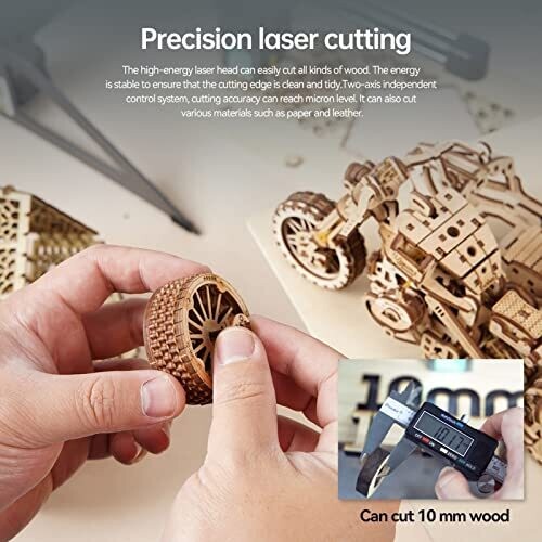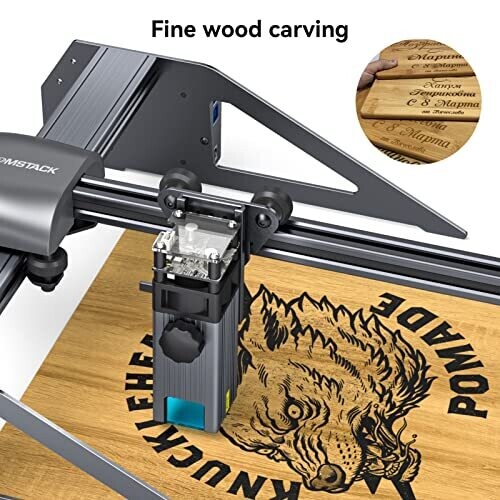 Experience precise desktop engraving with a compact all-metal frame. Quick setup with 85% pre-assembly, versatile engraving on wood, bamboo, leather, and more, using a high-energy fixed-focus laser for crisp results and safer operation in a compact workspace.