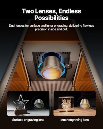 Achieve flawless inside-glass engraving with ultra-stable UV precision for crystal displays. Create personalized gifts with professional results, enjoy fast batch production and smart auto-focus, and engrave on crystal, glass, acrylic, plastic, ceramics, and more with a fully enclosed design.