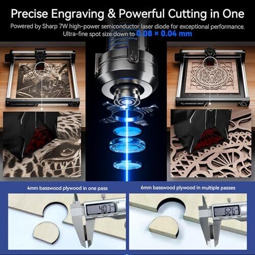 - High-precision 12W laser technology delivers sharp engravings and clean cuts with remarkable reliability.