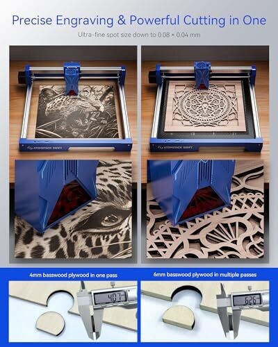 The Atomstack Swift 7w laser engraver and cutter delivers precise 0.06mm engraving for wood and metal. Compatible with dark acrylic, glass, and leather, it offers versatile performance for hobbyists and small makers.