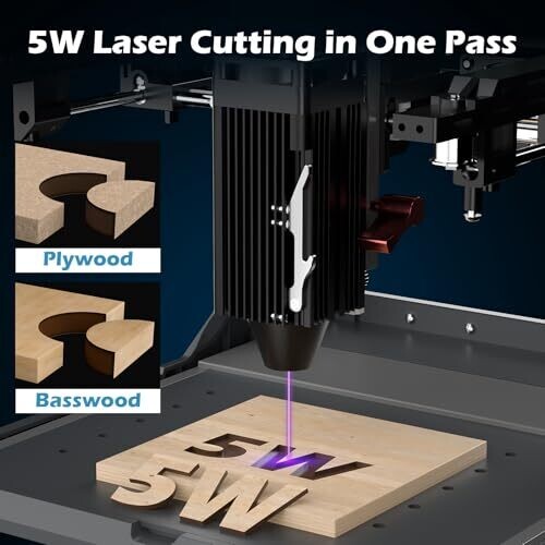 • Ultra-portable 5W laser engraver designed for DIY projects on wood, leather, plastics, fabrics, and coated metals.