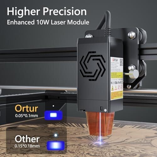 Ortur Laser Master 3 10000Mw Engraver, 0.05 X 0.1mm Spot, App-Controlled Cutter, Class 4