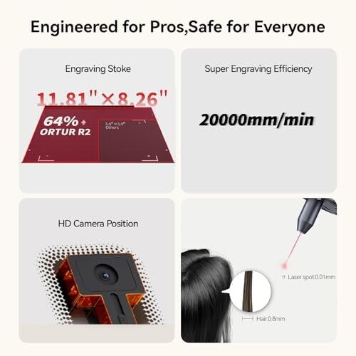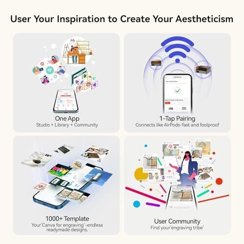 • APP-controlled experience with smart features for design generation, hand-drawn sketches, and QR-code engraving to personalize creations.
