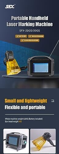 A compact handheld fiber laser engraver for on-the-go marking with professional results. Fast, precise marking on metals and compatible materials, with one-click operation. Lightweight yet durable for outdoor use, supports various fonts, codes, QR, and personalized branding; battery-powered for mobility.