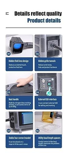Powerful 20W fiber laser enables on-the-go metal engraving with a compact, lightweight handheld design. Marks within a 70x70 mm area, ideal for logos and serials. Includes rechargeable power and Linux-based system for quick setup and easy file support.