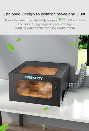 Enclosed design isolates 99% of smoke and odor during engraving and cutting, contributing to a cleaner working environment.