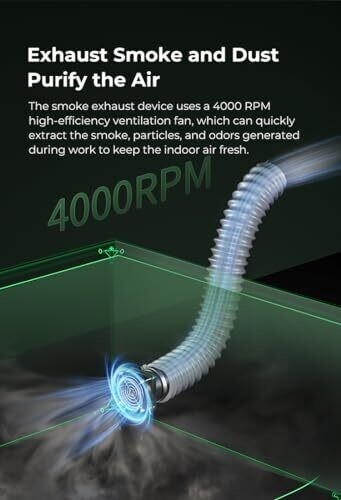 Exhaust system uses a 4000 RPM high-efficiency ventilation fan to quickly extract smoke, particles, and odors.