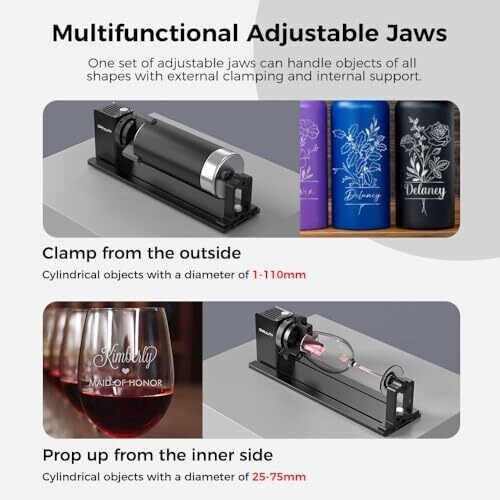 • Supports a wide range of objects and applications, enabling engraving on cylindrical items, mugs, rings, balls, and more.