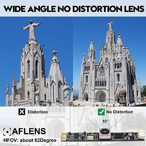 Mini USB autofocus camera with a distortion-free lens; horizontal field of view about 62 degrees.