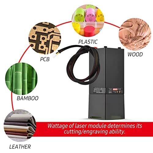 suitable for materials including paper, wood, plastic, leather, sponge, stainless steel, and other materials; the exact suitability depends on material thickness and laser power settings.