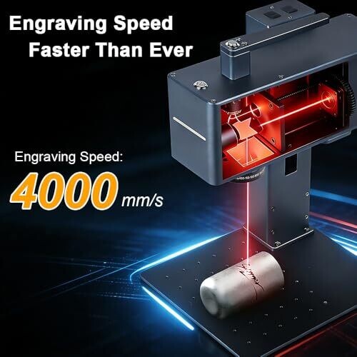 Dual-laser system with 2 W infrared (1064 nm) laser and 10 W blue (450 nm) laser for material-specific engraving capabilities; supports metals, wood, leather, ceramic, and acrylic materials. Engraving speed up to 4000 mm/s. Ultra-precision marking with fine beam quality (0.01 mm capabilities). Connectivity supports Windows, iOS, and Android devices via WiFi and compatible apps (LightBurn, computer or mobile app). Rotary holder enables engraving on cylindrical and curved objects. Working area is 100 × 100 mm. Portable handheld and desktop operating design. Includes 1-year warranty with after-sales support and installation resources.