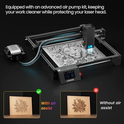 - Includes a 4-in-1 rotary roller kit and air assist to handle cylindrical objects and reduce smoke for cleaner engravings.