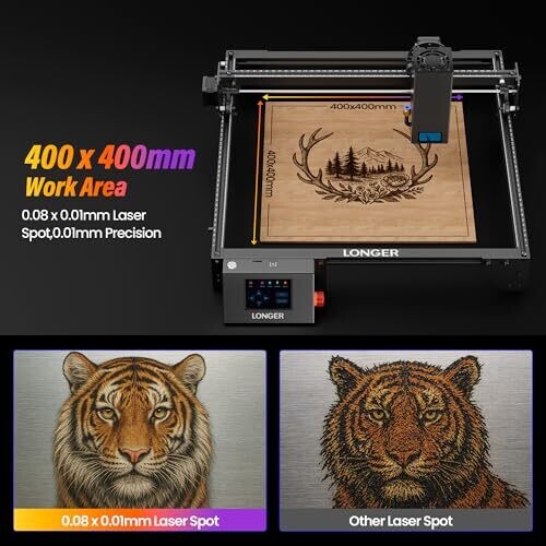 - Large engraving canvas with a spacious 400×400 mm working area to tackle bigger designs in fewer passes.