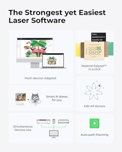 • Unleash professional-grade precision with a compact desktop CO2 laser system designed for wood, acrylic, glass, fabric, leather and more.
