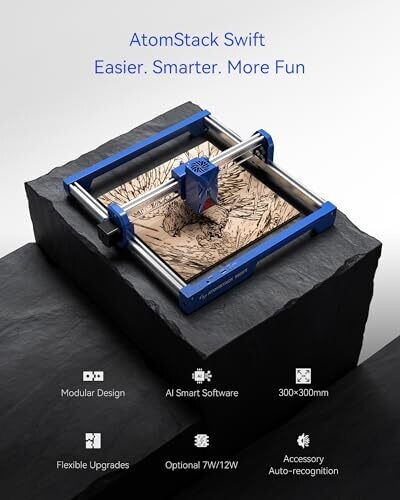• Atomstack Swift 7W Laser Engraver, Swift 7w Laser Cutter, 0.06mm High Accuracy Laser Engraving Machine for Wood and Metal, Dark Acrylic, Glass, Leather