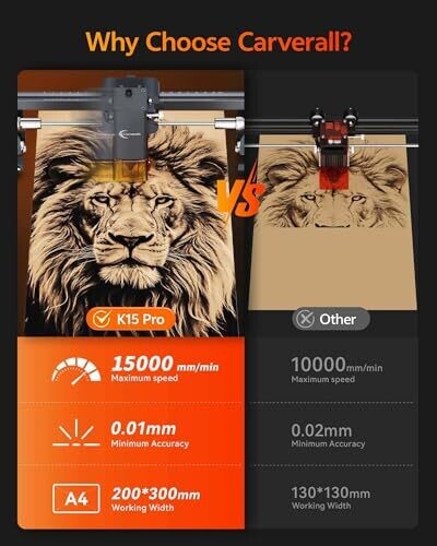 Carverall K15 Pro Diode Laser Engraver & Cutter 7W, Wifi 0.01Mm, (Near A4)7000Mw