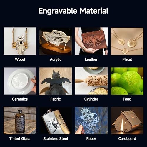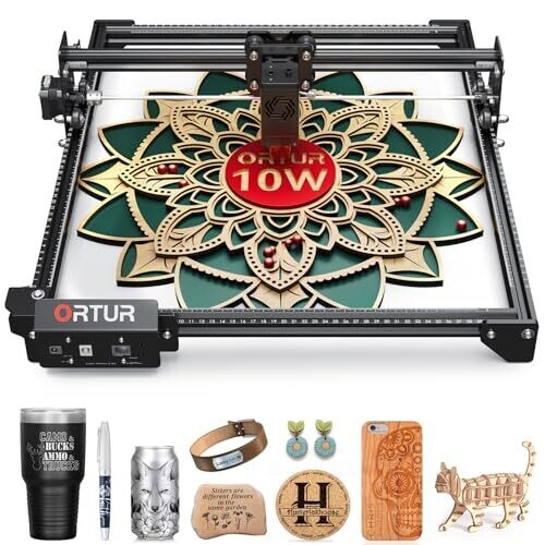 • Powerful 10,000 mW laser enables fast cutting and detailed engraving on wood, leather, acrylic, and a variety of materials.