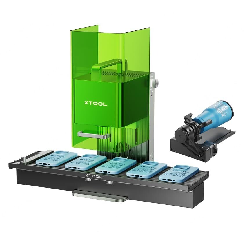 • Xtool F1 2-In-1 Dual (IR + Diode) Laser Engraver and Cutter with RA2 Pro Rotary