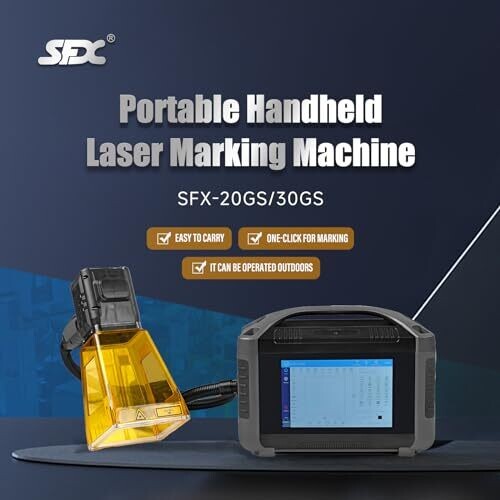 Portable handheld laser engraver with a 100x100 mm marking area for metal and non-metal. 20W fiber laser delivers fast, durable, high-contrast marks. Rugged, lightweight design for outdoor use. Linux-based software with an 8-core processor and one-click marking.
