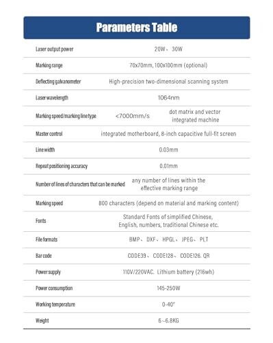 • Fiber Laser Engraver 20W Portable Handheld Laser Marking Machine 100Mm 220V Linux System 8 Core