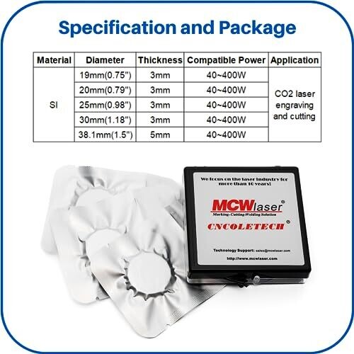 - High-precision mirrors designed for 10.6um CO2 laser systems, delivering cleaner cuts and engravings.