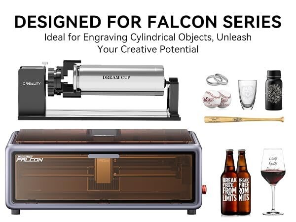 - Elevate your Falcon A1 laser engraving with the SainSmart Creality Rotary Roller Kit, bringing professional cylindrical engraving to your workflow.