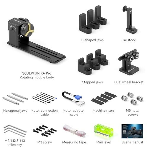Sculpfun RA Pro Laser Rotary Roller, 3-In-1 Jaw Roller for S6/S9/S30/Sf-A9 Engraver, Adjustable Angleto180°