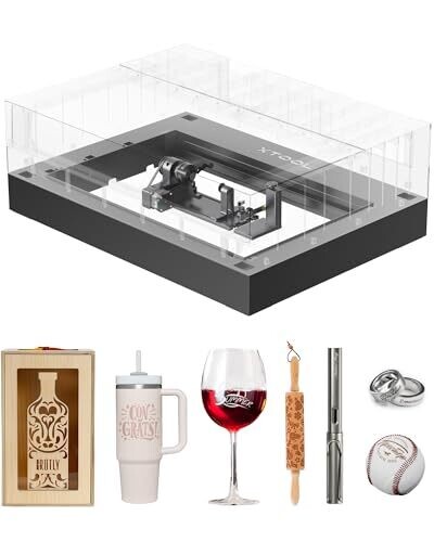 - Rotary roller enables smooth 360° engraving on cylindrical items like tumblers and mugs.