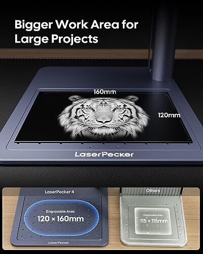 Engraving up to 4000 mm/s with a working area of 160 × 120 mm.