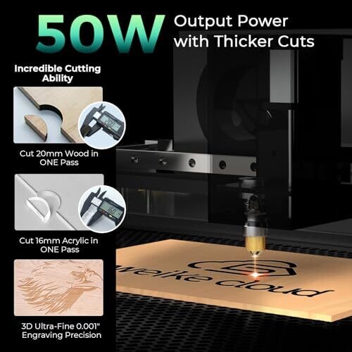 • Powerful cutting capability, handling up to 20 mm wood and 16 mm acrylic in a single pass, ideal for ambitious DIY and prototyping.