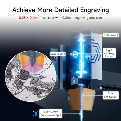 Ortur Laser Master 3 10000Mw Engraver, 0.05 X 0.1mm Spot, App-Controlled Cutter, Class 4
